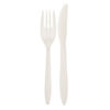 Serve any meal with this cutlery kit. Each pre-packaged wrapping contains a plastic heavy weight fork and knife, as well as salt and pepper packets and a napkin.