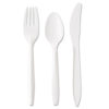 Serve any meal with this cutlery kit. Each pre-packaged wrapping contains a plastic heavy weight fork, spoon and knife, as well as salt and pepper packets and a napkin.