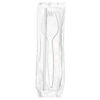 Serve any meal with this cutlery kit. Each pre-packaged wrapping contains a plastic medium weight fork, spoon and knife, as well as salt and pepper packets and a napkin.