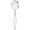 Disposable plastic fork for use with soft foods and many firm foods such as potato salads, lasagna, sausages or hot dogs, and other dishes. Made of polypropylene for flexibility and to resist breakage. White plastic fork coordinates with other white utensils and many tableware designs and decorations.