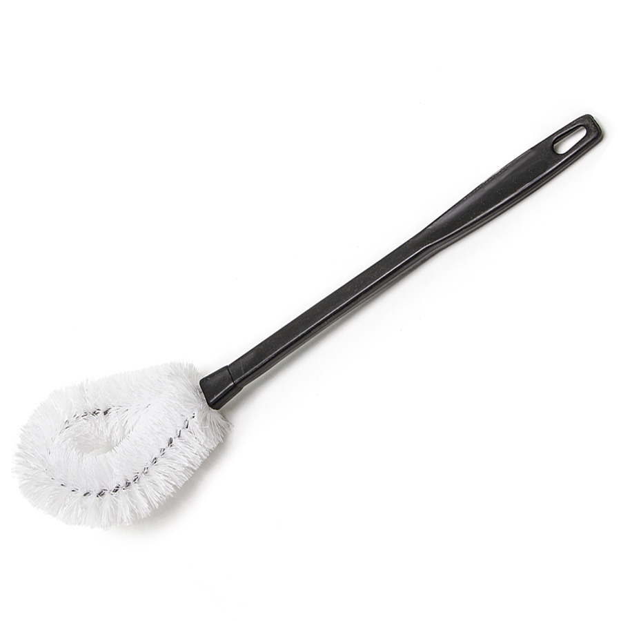 90° angled head, strong recycled grey plastic handle with convenient hang hole resists bacteria. Coated twisted wire construction to withstand heavy use.White/grey polypropylene removes the toughest stains.